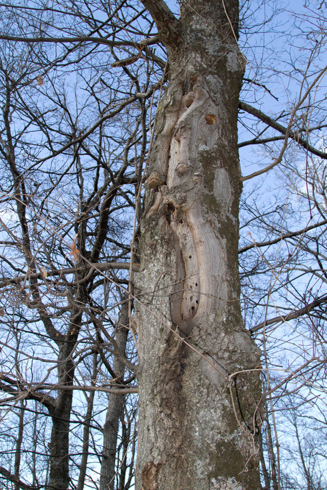 Caro Cesare, i fori come ti hanno già detto dovrebbero proprio essere di Cerambyx. Aggiungo solo che in alberi così vecchi e in quella posizione del tronco dove c'è una "vecchia spaccatura" appunto non ci sono solitamente i Cerambyx, ma proprio gli Aegosoma.