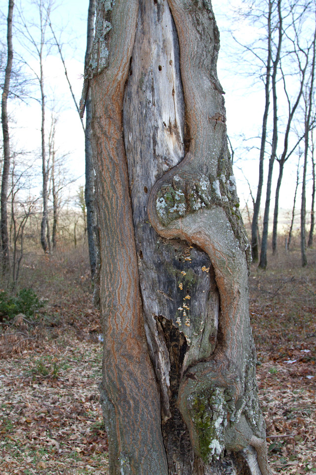 ciao cesare come stai? la località la conosco assai bene, ci ho campionato vari anni con ottimi risultati... dalla foto ovviamente non si può capire molto, però da quel che si vede e conoscendo i posti e le specie raccolte ti posso dire che i fori ellittici più grossi (si vedono abbastanza nella prima foto) dovrebbero essere di Aegosoma scabricornis, mentre quelli tondi più piccoli di Xylotrechus arvicola e di Eucnemidae (nella zona sono presenti più di una specie, ma dovrei recuperare i dati per dirti quali, ora a memoria non ricordo). la pianta è quasi certamente un cerro.