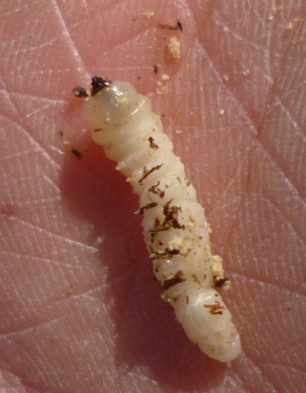 da un ramo caduto a terra, che ho provato a recuperare, è uscito mentre spezzavo il ramo in parti più trasportabili, questa larva. Superava di non molto il cm.