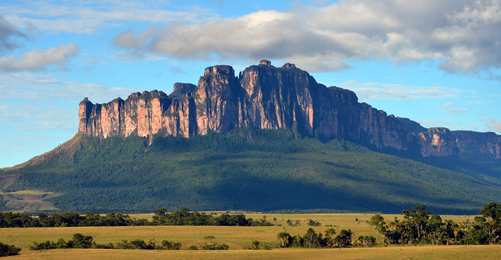 E’ uno dei 10 tepui che formano il massiccio del Chimantá: é unito al Churí Tepui (a destra, fuori campo), mentre gli altri due tepui separati che si vedono a sinistra sono l' Upuigma e l' Angasima.