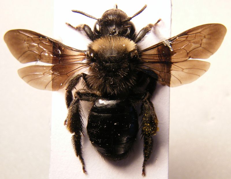 Lunghezza mm 17, raccolto mentre bottinava su fiori di asfodelo. Mi ha incuriosito perché in mezzo al nero generale del corpo spicca un "collare" di peluria chiara del bordo anteriore del pronoto. Se sono necessari dettagli posso provare a fotografarli. Qualcuno lo conosce? Grazie a tutti.