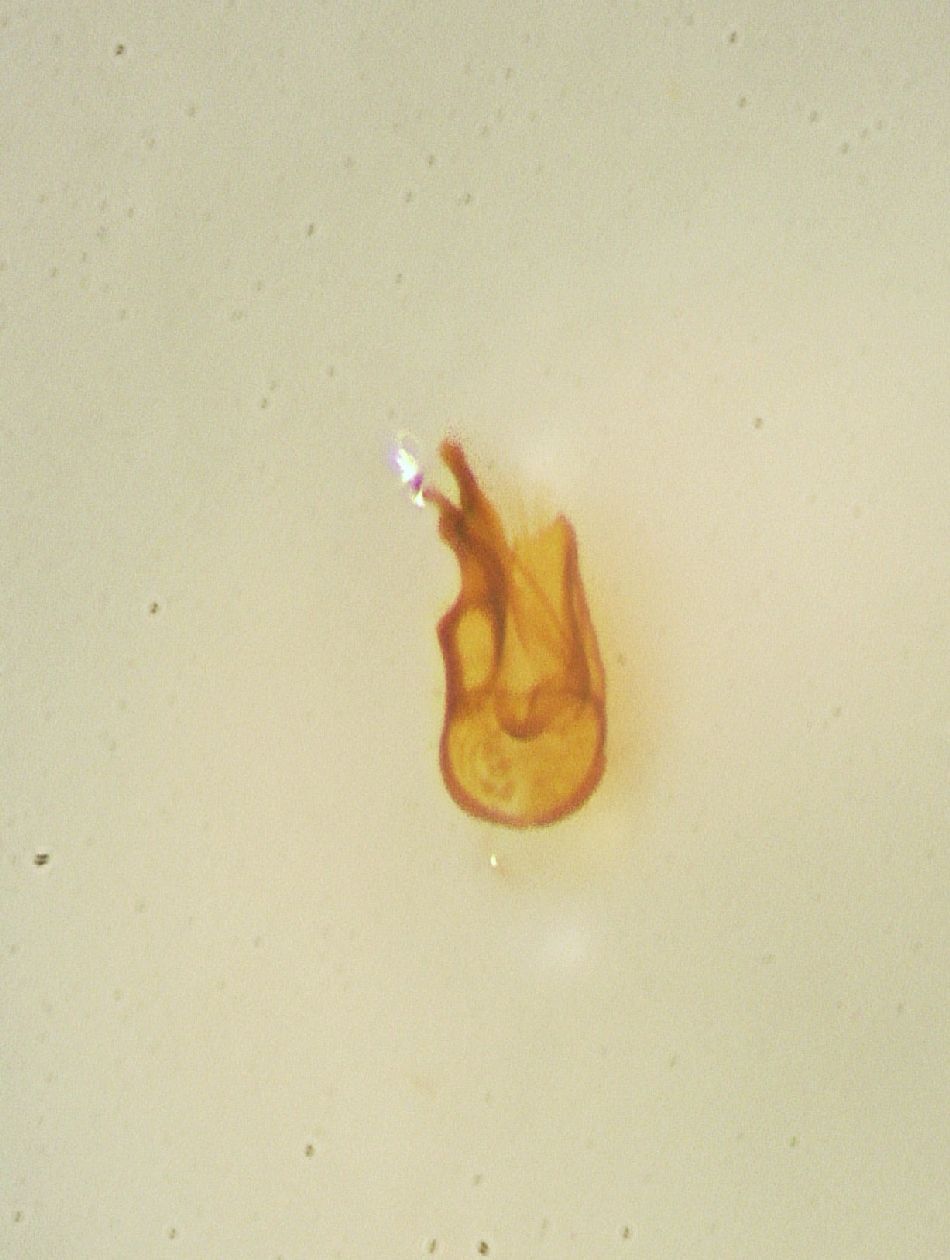 La bestiola era piuttosto acciaccata ed del tutto impreparabile nonostante il lungo "bagno"....non ho voluto insistere per cercare di accomodarla e mi sono limitato all'estrazione dell'edeago, piuttosto caratteristico.