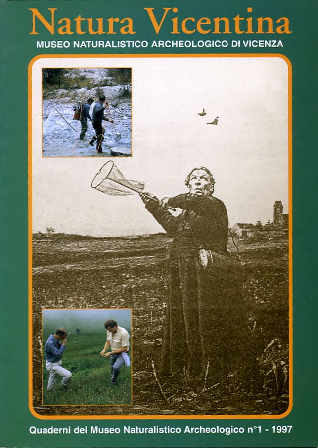 Mi fa piacere in questa occasione ricordare l'amico Faustino Cussigh, che vedete insieme a me davanti alle teche della collezione Disconzi. Penso che alcuni di voi abbiano avuto modo di conoscerlo. Tra l'altro, è stato il descrittore dell'endemico Curculio vicetinus. Insieme abbiamo pubblicato un lavoro sulla collezione: Biondi S. & Cussigh F., 1997 - La collezione entomologica dell'abate Francesco Disconzi nel Seminario vescovile di Vicenza. 1-Coleotteri. Natura Vicentina, 1: 3-19. Ecco il frontespizio della rivista del Museo Naturalistico Archeologico di Vicenza: