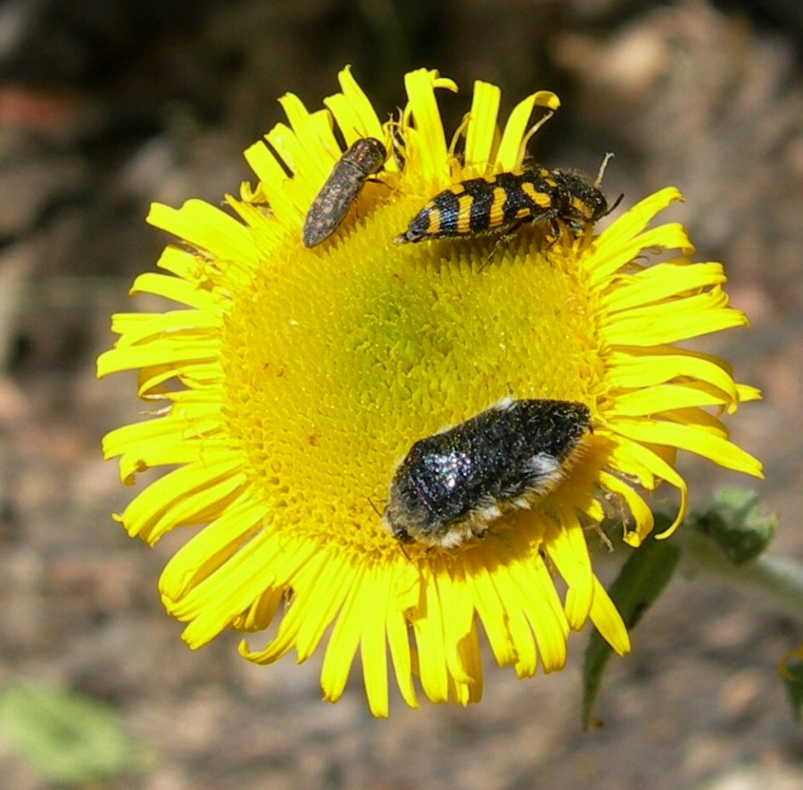 No, in realtà di queste composite gialle ce n'erano diverse e ho fatto bottino: oltre alla Acmaeoderella adspersula e lanuginosa (le più abbondanti) e alla Acmaeodera prunneri, ho raccolto anche le seguenti Anthaxia: A. hungarica, A. confusa baudii, A. scutellaris, A. dimidiata, A. milefolii polychloros. Avevo anche un paio di piattini gialli e un paio bianchi: in quelli gialli ci sono finite solo un paio di Oedemera (boh :roll: ), in quelli bianchi tante Oedemera e 4-5 Acmaeodera cylindrica (che invece non c'era sui fiori gialli, e che credo di aver raccolto sempre e solo sui fiori rosa-carico del Convolvolus althaeoides).