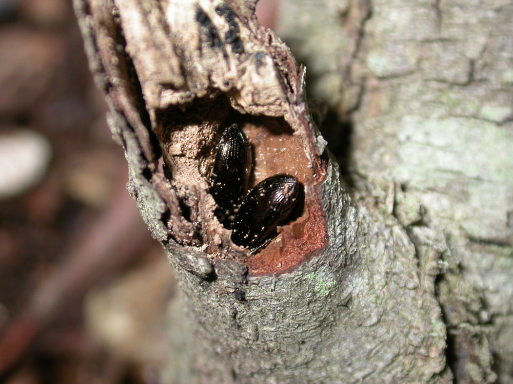 I fori fatti da vari coleotteri nel legname ormai morto sono spesso occupati dai Nalassus genei (Gené 1839): eccone due: