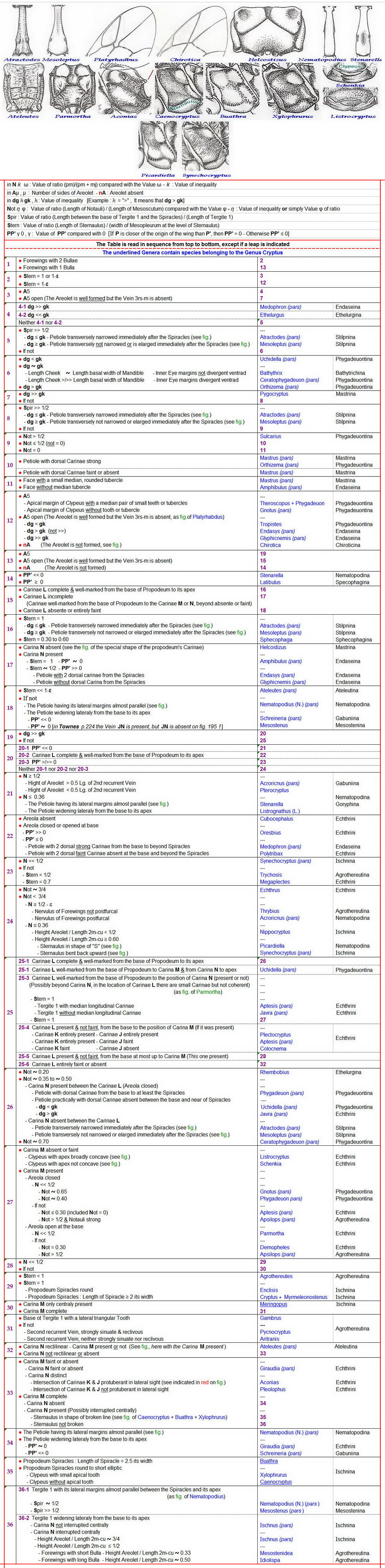 ATTENTION : This Key treat only of species of which we see that the length of the Forewing is ≥ 6 mm and whose the Wings are normally developed.The Genera with the length of Forewing is always lower than 6 mm are in :