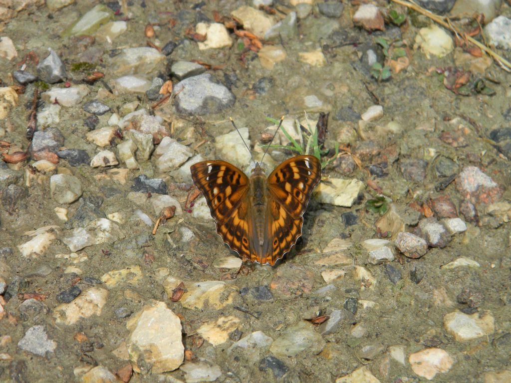 ..il fatto che non si vedano riflessi blu, non certifica che sia una femmina :il colore iridescente dell' Apatura ilia è provocato da effetti fisici ( incidenza della luce) e questo, visto l'addome esile, è un maschio. Le femmine, tra l'altro, raramente si posano a terra....