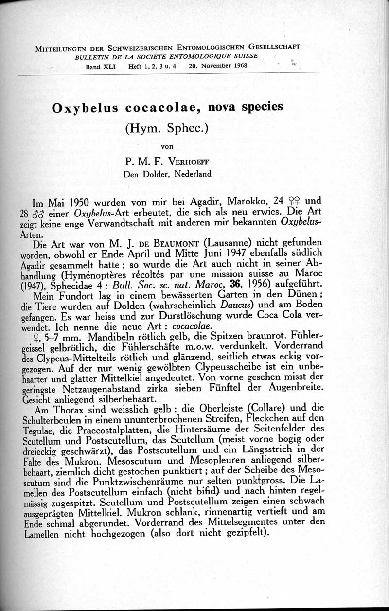 La cattura è avvenuta in Marocco, ad Agadir, nel mese di maggio e, come ci informa l'Autore : "...faceva un gran caldo e, per spegnere la sete, stavo bevendo una Coca Cola. Nomino perciò la nuova specie: cocacolae..." :birra: