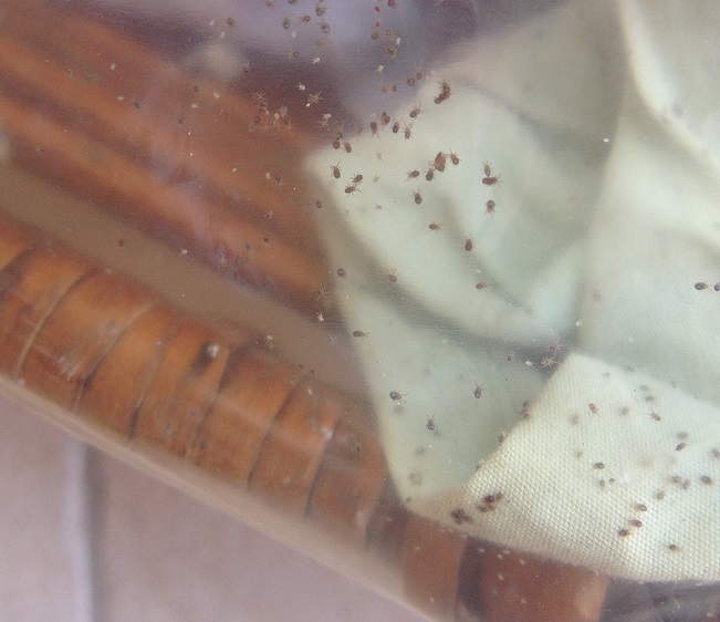 Ho scoperto un nido di piccioni sopra un armadio che tengo in balcone. Avevano fatto il nido dentro ad un vecchio cesto di vimini. Appena lo abbiamo tolto abbiamo visto che brulicava di questi insettini di varie forme e colori. :sick: Quelli più grossi ci sono sembrati cimici. :cry: Tuttavia ce ne erano altri minuscoli di colore rosso, nero o trasparente. Abbiamo provveduto subito disinfettare tutto con alcol e candeggina e a spruzzare tutto con un insetticida specifico. :devil: Tuttavia, anche se dopo aver spruzzato il veleno ne abbiamo trovato qualcuno stecchito, è capitato anche di vedere dentro casa qualcuno di questi micro insettini. Sono piccoli come il puntino di una i, difficilissimo metterli a fuoco in una foto. :no: