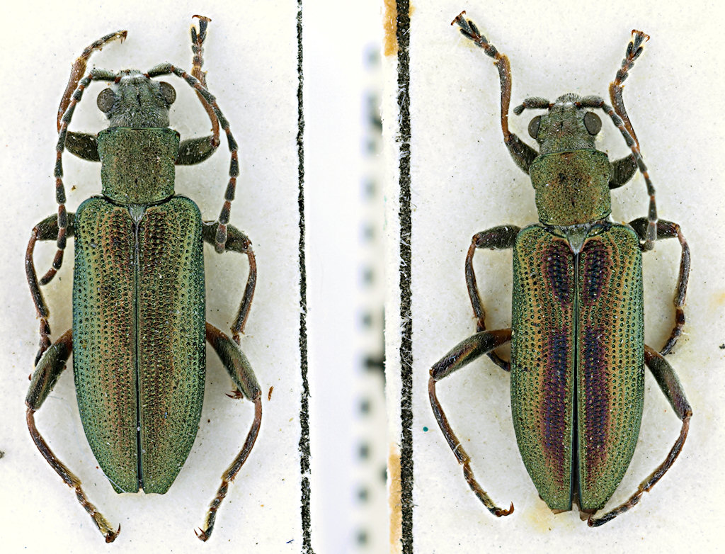 Per confronto, queste sono due Donacia vulgaris che ho preso sul Lago di Fondi (Latina), diversi anni fa, quando le raccoglievo per uno specialista canadese di Donaciini, che mi ha rimandato alcuni esemplari determinati.