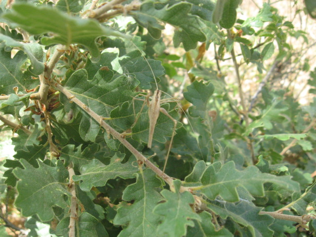 Incontro poi questo ortottero, presente in molti esemplari di cui uno raccolto: uno di essi, posatosi su un cespuglio di quercia, mi concede un paio di foto: di cosa si tratta?