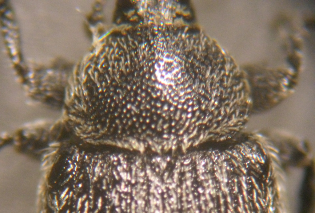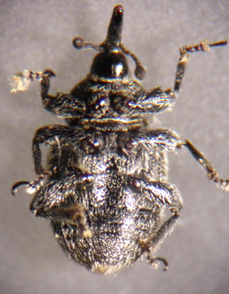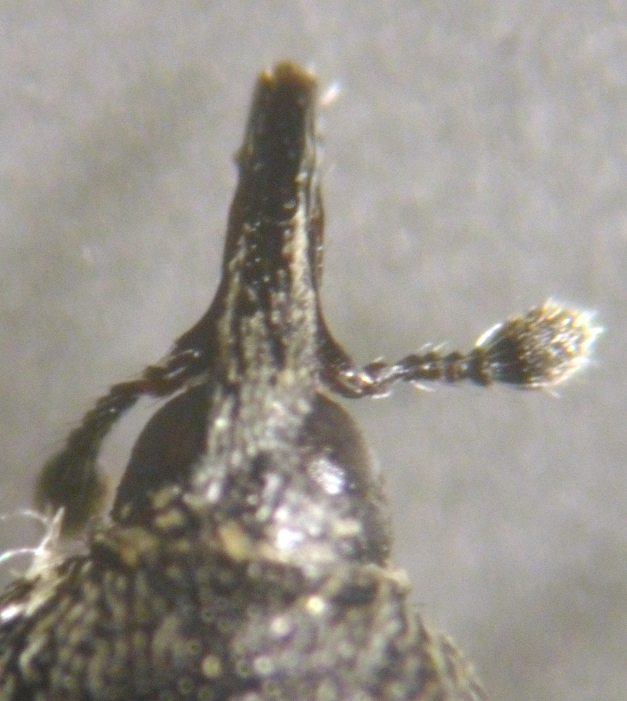 Sulla stessa pianta di questi ho raccolto anche un piccolo Curculionidae. Inizialmente l'avevo confuso per un Attelabide e avevo provato a individuarne la specie cercando tra gli Attelabidi, ovviamente senza risultati, solo per caso ho trovato una foto di un Curculionide del genere Miarus.