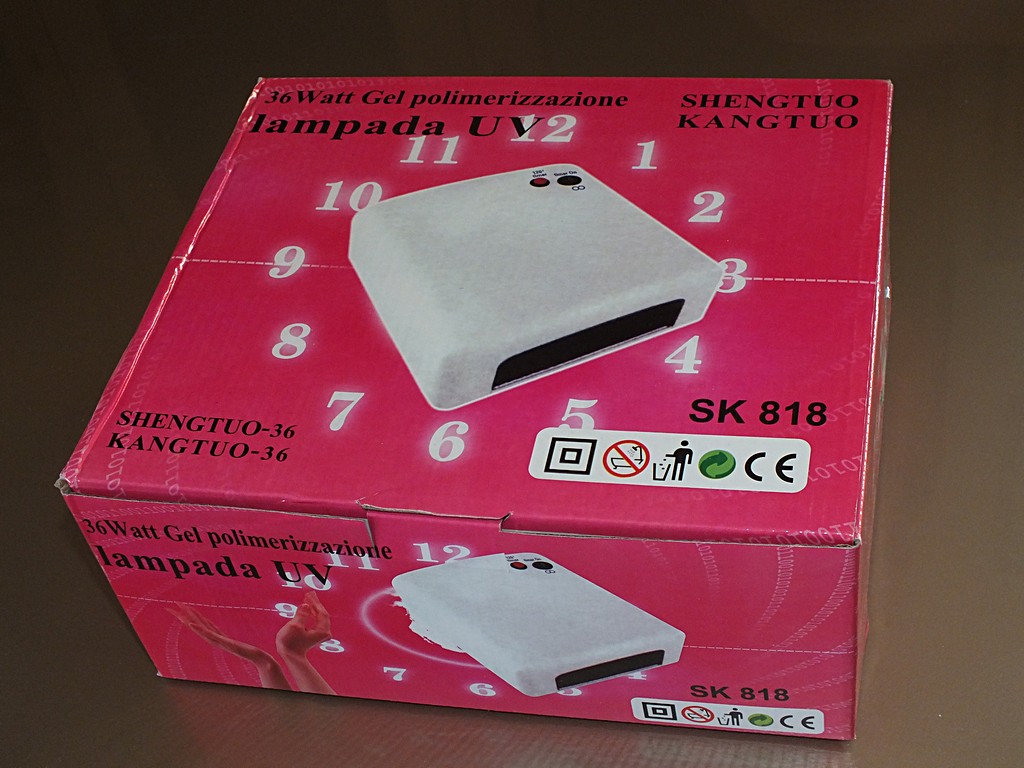 L'apparecchio per le unghie è da 36 Watt. O meglio, questo è quanto assorbito dai tubi. Bisognerebbe aggiungere qualcosa per l'assorbimento del circuito che fa da starter e reattore, ma in genere è molto basso.
