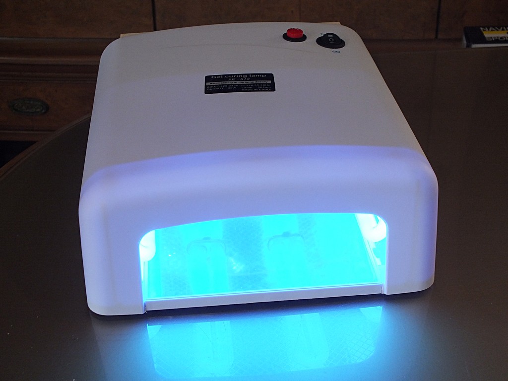 Luce bianca a parte, l'effetto dei 36 W UV dell'aggeggio per le unghie era almeno uguale a quello sommato delle due lampade black light.