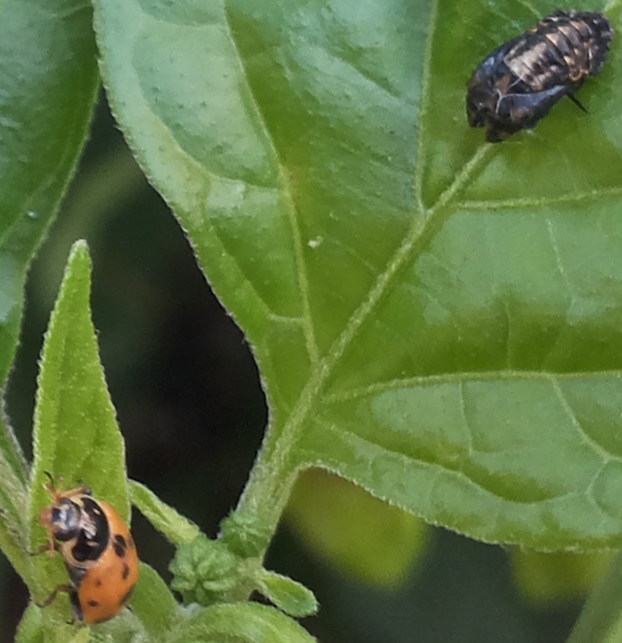 Nel frattempo vi posto la foto della pupa accanto ad un esemplare adulto...le piante sono sempre più affollate :ok: