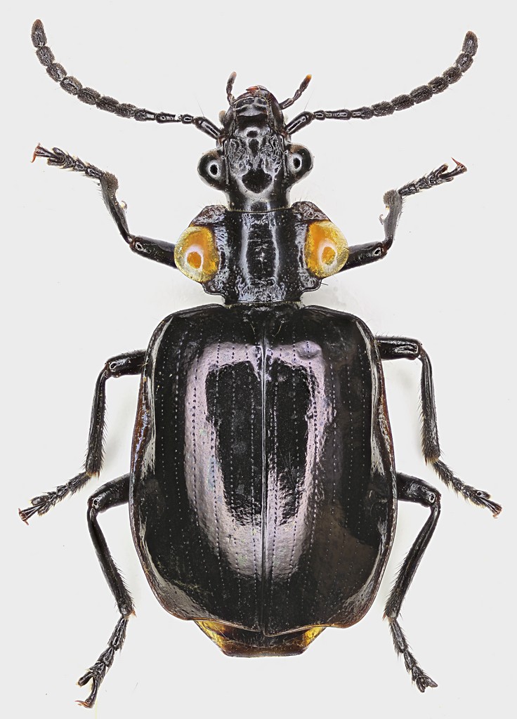 Il problema è che anche sul Web non ho trovato molto. Oltre a una foto su Carabidae.org, dove si vede l'esemplare con gli angoli posteriori diversi, non ne ho trovate altre, e altre specie raffiguate sono molto diverse.