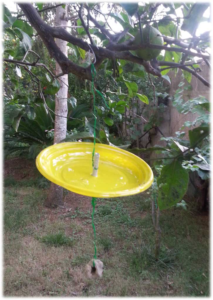 trappola cromotropica gialla per la cattura di aleurocanthus spiniferus (forte attacco alle piante di agrumi e non) appena posizionata.(Trappola costruita da me)