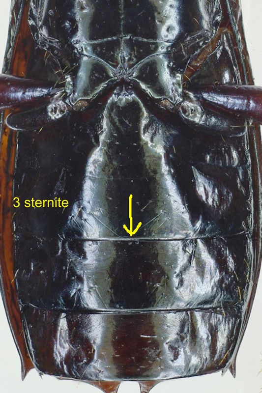 Augusto, nella tua ultima foto la parte mediana del margine dello sternite III è chiaramente diversa dal resto del margine (e dai margini degli altri sterniti), per la presenza di una specie di prolungamento laminare, più sottile del resto, che potrebbe essere benissimo, in molti esemplari, o semplicemente osservato con luce diversa, più o meno trasparente. La stessa struttura si osserva nella seconda foto, ma non nella prima.