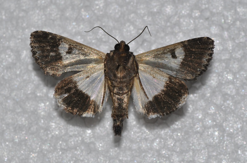 sì, Aedia leucomelas (Linnaeus, 1758): Catephia alchymista ha sempre delle zone più chiare vicino al margine delle ali anteriori: