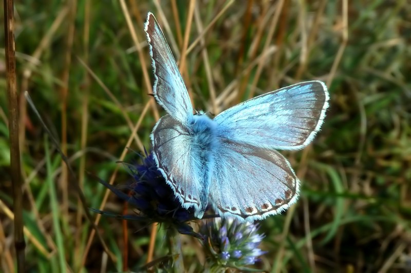 ..Anche questo mi sembra di una bella tonalità, forse ancora più celeste di quello Ligure, ma ti assicuro che è un coridon, dato che nella stessa zona a maggio -giugno-luglio-, non vola niente di simile : i primi cominciano a farsi vedere ai primi di agosto ( raramente l'ultima decade di luglio ). Da quello che so l'unico criterio certo per poter dire che è un hispanUS (se il genere è Polyommatus credo che anche la specie sia maschile) è la data d'incontro, dato che la prima generazione del P. hispanus è precoce , e quando volano i coridon dovrebbe essere gia scomparsa... di solito la seconda dovrebbe volare fino ad ottobre , quando, in genere i coridon non ci sono più. Se però esistono dei caratteri per poter differenziare le due specie, sarebbe interessante saperlo.....