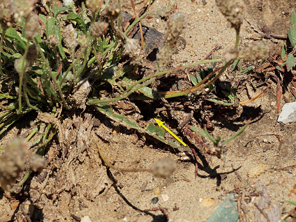 Mentre cercavo di fare qualche altra foto, devo essermi avvicinato un po' troppo, e si è involata. Ma invece di sparire chissà dove, si è infilata in un forellino nel terreno sotto la piantina su cui si era posata, proprio sul sentiero.