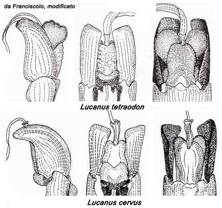 Lucanus cervus e tetraodon: edeagi