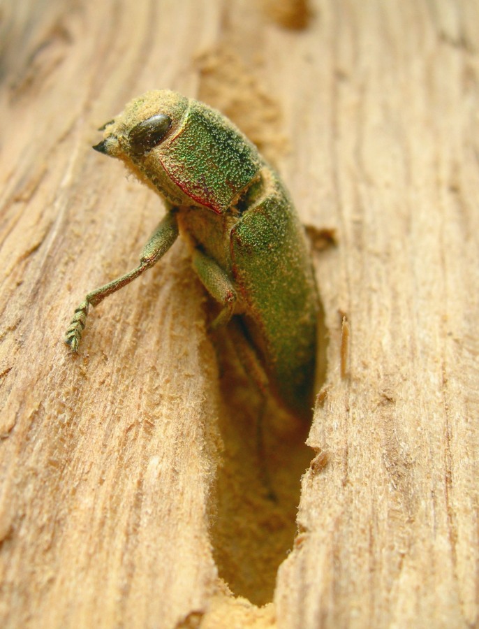 Nella seconda si vede il buprestide morto dopo estratto dal legno.