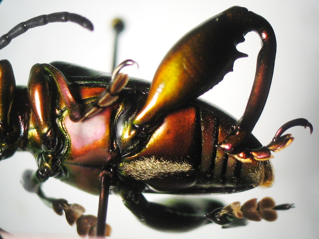 ed infine questo, decisamente più rosso, che potrebbe essere i maschio di Sagra femorata, visti i femori più articolati e la pancia pelosa.