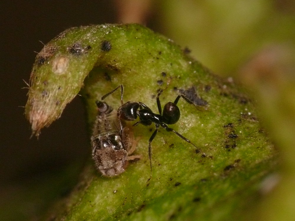 It was interesting that they've build chambers in the pits of a ripe guanábana fruit and on the exterior cared about some membracidae nymphs.