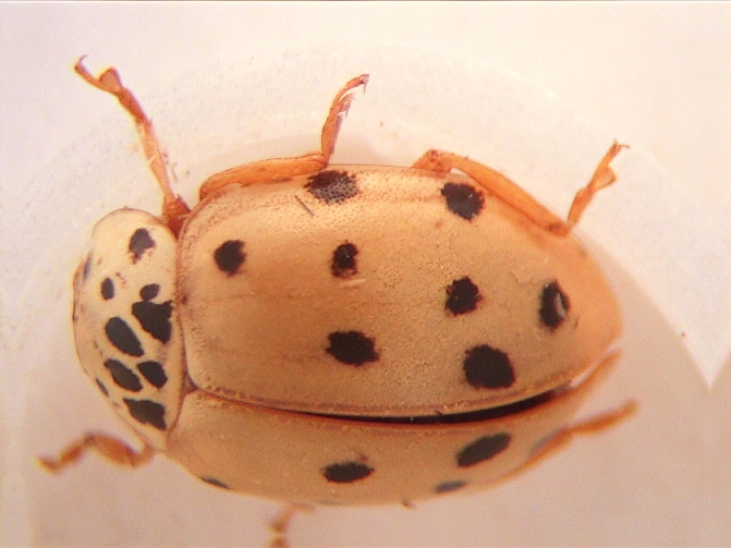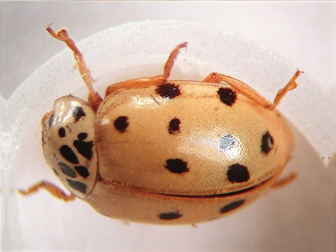 Simile a un esemplare postato il 19.X u.s. e determinato come Psyllobora vigintiduopunctata, ma le macchie di quest'ultimo sono meno estese e quelle sul pronoto sono diversamente disposte.