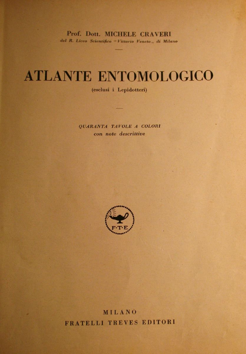 Prof. M. Craveri, 1938: Atlante Entomologico (esclusi i Lepidotteri). Fratelli Treves