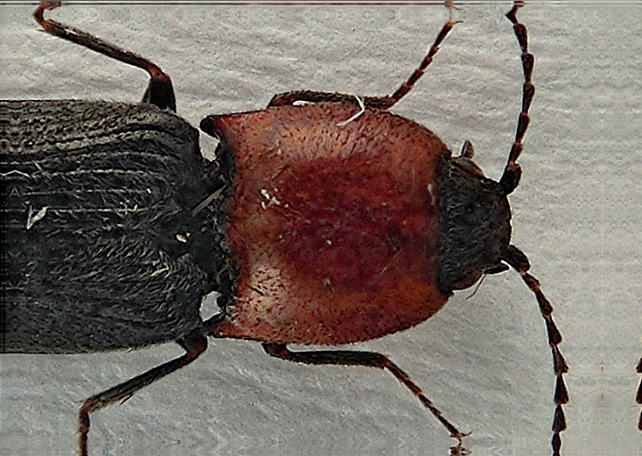 le due specie più comuni presenti nella tua zona e rinvenibili spesso sotto le cortecce in inverno sono C. italicus e C. collaris. Sono molto variabili per il colore del pronoto con l'estensione del colore rosso o nero fino in rari casi a interamente nero o come nel nostro caso rosso, anche le zampe possono essere nere o rosse. la distinzione spesso non è facile se non si ha un occhio esercitato ed in molti casi bisogna ricorrerre all'esame delle sclerificazioni della borsa copulatrice. Quando si hanno maschi la distinzione è più difficile perché gli edeagi sono poco differenziati e allora può servire la punteggiatura del pronoto in genere più densa e forte in collaris che in è anche mediamente più robusto e più spesso ha le zampe scure ecc.