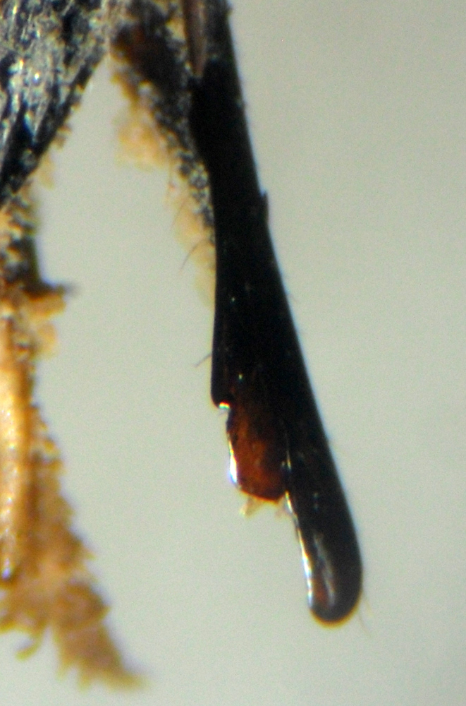 Questi invece sono due particolari del maschio, per mostrare il disegno clipeale più esteso e le mandibole tridentate, carattere proprio di sole 4 specie all'interno del genere Eustenogaster(tutte le altre le hanno monodentate).