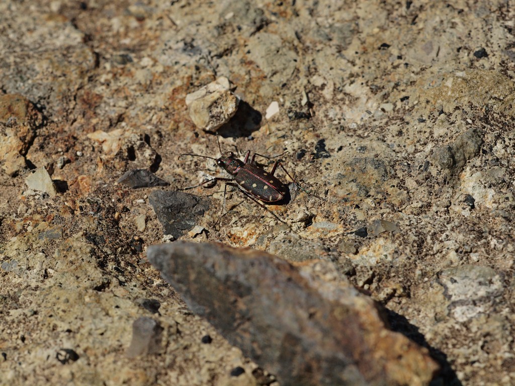 La cosa strana, per una specie che dovrebbe essere tipicamente psammicola e, salvo questa strana popolazione, legata ai litorali marini sabbiosi, è che queste si concentravano a cacciare sulla distesa di roccia vulcanica che vedete nelle foto.