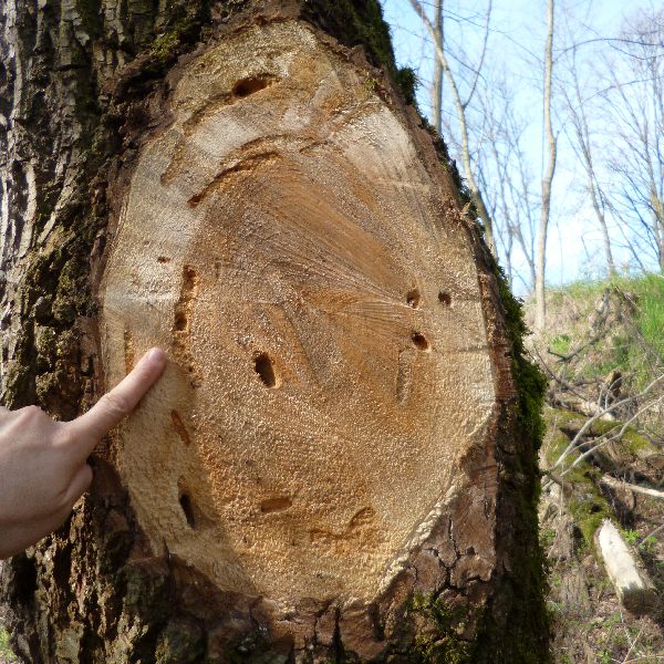 Non ho mai visto dei fori di queste dimensioni!!! Si tratta di salici, ma chi può dire se siano ancora occupate quelle tarlature?