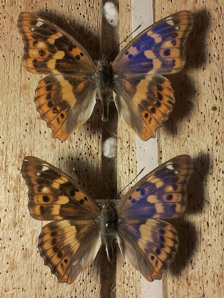 Qui si vede uno dei due maschi della forma nominale, una serie di maschi clytie intermedi e scuri (anche se non troppo, ce ne sono altri ancora più scuri) e uno piuttosto chiaro, con un azzurro piuttosto chiaro. Si vede che è più chiaro degli altri perché i ponti tondi scuri delle ali posteriori si staccano dal resto. Questo ha anche le lunule arancio quasi fuse con il bordo. Anche la cella discale è solo parzialmente ricoperta di azzurro. Ne ho altri con caratteristiche ancora più pronunciate.