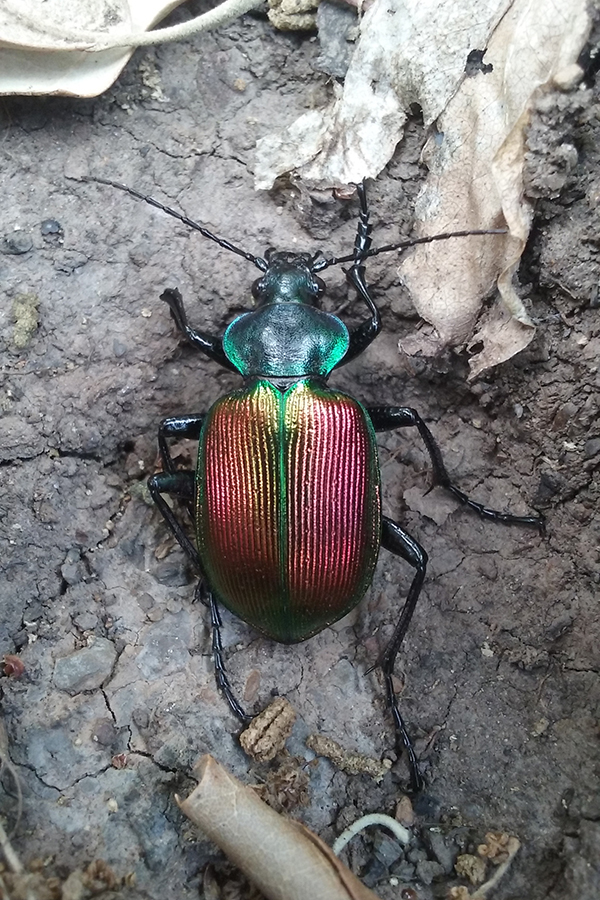 Due giorni fa, mentre gironzolavo nella sughereta nebrodense di Monte Pagano (ME), mi sono imbattuto in questo splendido coleottero che ho sempre sperato di incontrare in natura, la Calosoma sycophanta Linnaeus, 1758. So che in alcune annate si presenta con popolazioni assai consistenti essendo legato anche alle esplosioni demografiche dei bruchi di Lymantra dispar, ma che non ho mai avuto l'occasione di incontrare.