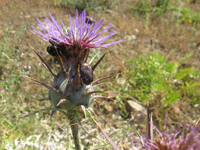 Ed è proprio sui carciofini selvatici, in piena fioritura, che inizio a scorgere i primi insetti della giornata.