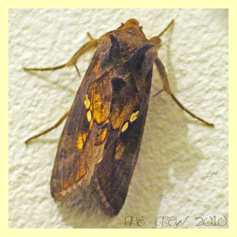 Concordo anch'io con Andrea, certamente di Noctuidae Plusiinae, probabilmente Chrysodeixis chalcites (Esper, [1789])