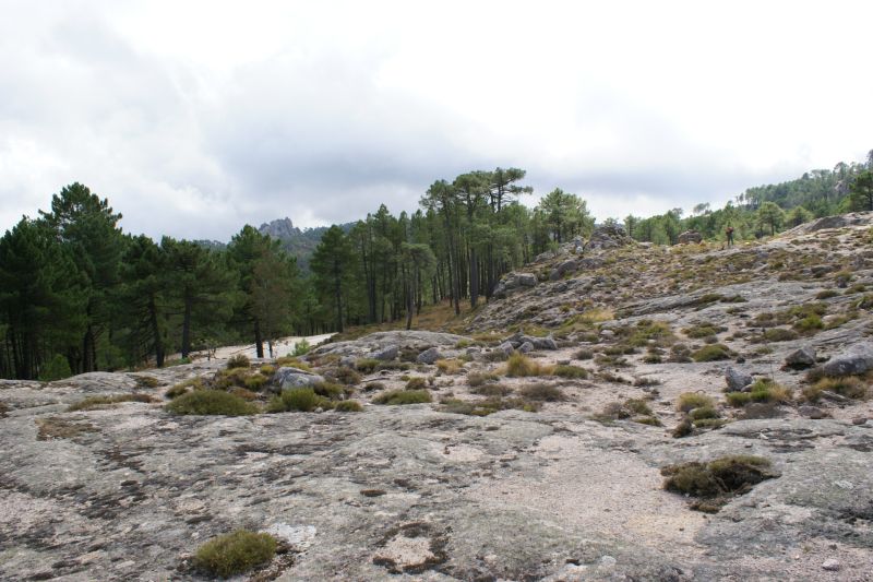 Tornando verso casa ci siamo fermati a Col de Bavella, altitudine 1200 metri sul livello del mare, località con maestosi pini larici (Pinus nigra subsp. laricio, var corsicana) scolpiti dal vento come giganteschi bonsai.