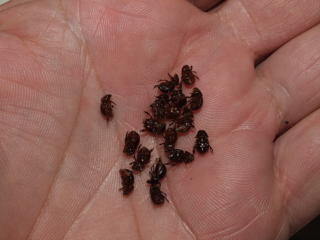Io per quel tipo di ricerca uso due setacci fatti in casa, uno con maglie da circa 8 mm, l'altro sarà intorno a 3 mm, forse qualcosa di meno. Il primo ferma il detrito grossolano, ed i secondo lascia passare il terriccio più fine. Tra il primo e il secondo mi rimane una porzione di terreno formata di granelli mediamente sui 4-5 mm, in cui è facile individuare i Chetonyx o altri coleotteri di quelle dimensioni, direttamente sul posto, senza bisogno di aspettare giorni, e senza dover fare il lavaggio del terreno. Volendo, poi, potrei raccogliere ciò che esce dal setaccio più piccolo, per le specie più minute. Ma dal terriccio adatto ai Chaetonyx non mi è mai uscita roba molto piccola in quantità.