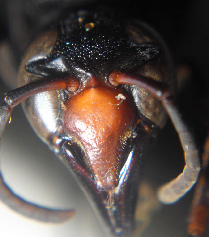 La femmina di questa specie si riconosce facilmente per il clipeo molto lungo e arancione, gli ultimi 4 tergiti arancioni, il secondo sternite molto sporgente alla base.