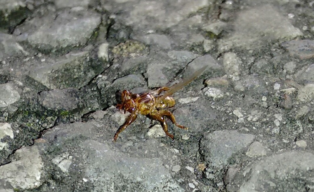 Ho notato che l'insetto tende a volare addosso alla pelle scoperta, e quando soffiato via (odio schiacciare gli insetti a meno che non sia indispensabile) tende a rimanere aggrappato alla pelle. Spaventato da questo atteggiamento, ho provato a schiacciarne uno ma ha una resistenza pari a circa quella di una zecca, e diversi colpi dati col cellulare sul ginocchio sono serviti solo a fargli perdere le ali.