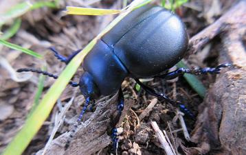 In realtà Timarcha nicaeensis è normalmente proprio di quel colore blu scuro del tuo esemplare. Alcuni un po' più blu, alcuni meno. Gli esemplari apparentemente neri che hai visto, sono probabilmente stati fotografati col flash, o comunque con luce artificiale che ne ha falsato il colore.