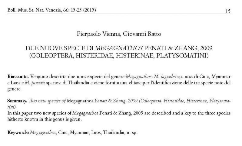 Megagnathos lagardei Vienna et Ratto, 2015 - Histeridae, Histerinae, Platysomatini
