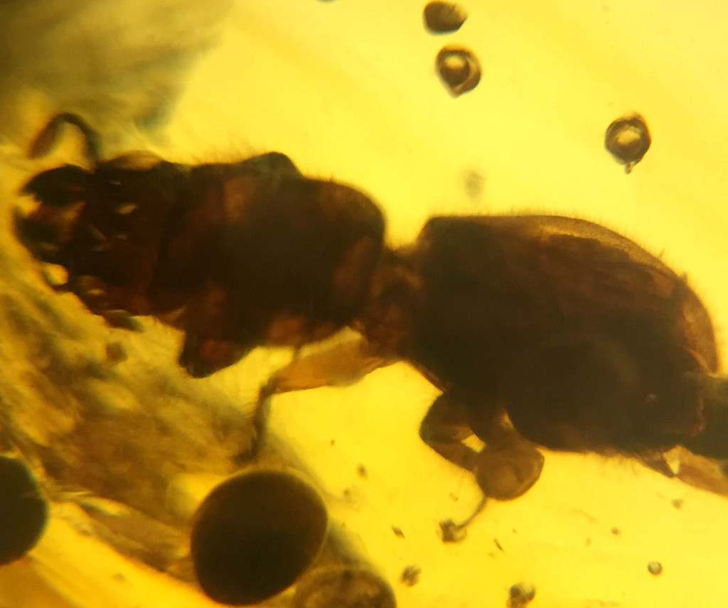 Mi confermate che non ci sono riscontri con le specie attuali? Conservato all'interno di Burmite.