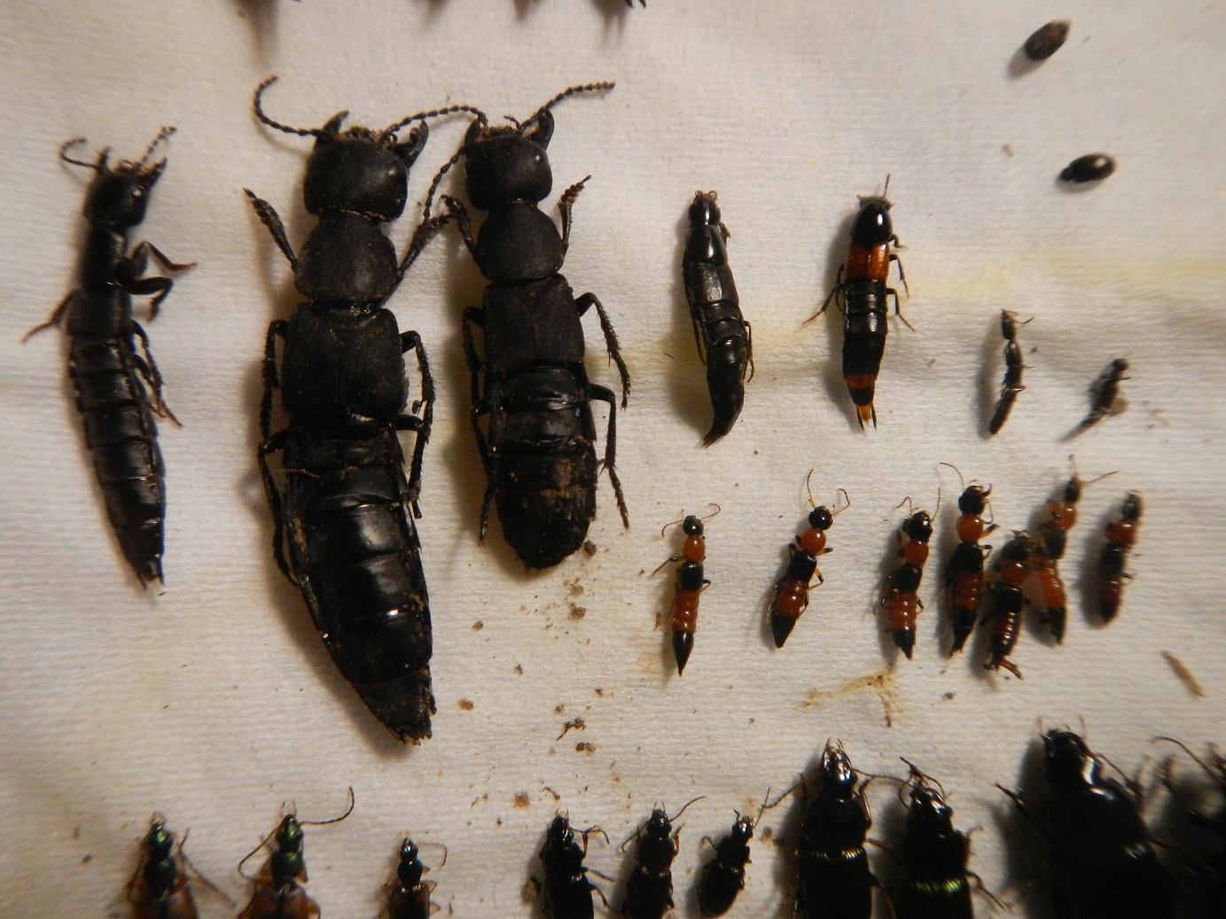 Qualche bello Stafilinide. Ocypus (Matidus) nitens (=nero), Ocypus (Ocypus) olens, Quedius sp., Astrapaeus ulmi (solo ora mi rendo conto che gli altri che avevo identificato come A. ulmi sono in realtà dei Quedius), Xantholinus linearis, Stenus guttula e Paederus (Paederus) gr. balcanicus.