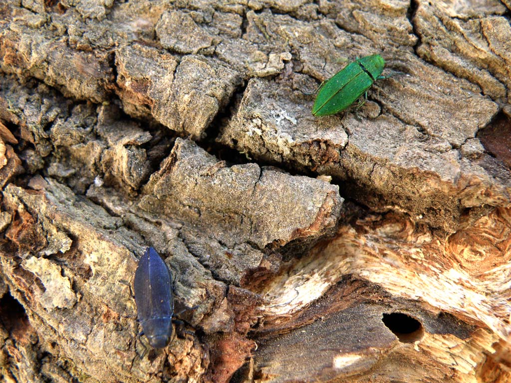 Questo bel Buprestide, presente anche in Italia, passa l'inverno come adulto e come tale ne abbiamo trovati alcuni nei tronchetti di Quercus faginea in compagnia di Mesosa nebulosa algerica. Presenta (almeno) due forme, una verde malachite ed una blu scura che convivono negli stessi legni e qui sono state fotografate assieme. Le foto non sono gran ché, ma, nonostante l'aria fresca del mio cortile, non stavano ferme un attimo (almeno non sono volate via). Maurizio (Julodis) ne ha certamente di migliori.