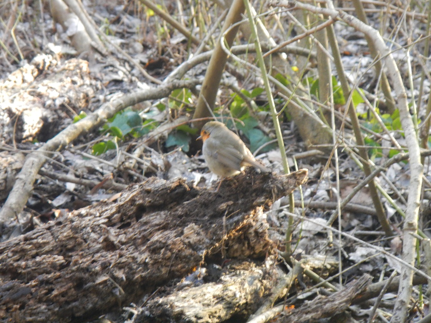 Unico motivo di entusiasmo, per me, è un pettirosso che ci segue per nulla impaurito, e che attinge alle nostre buche per prelevare i lombrichi appena messi alla luce. Nel tentativo di immortalarlo dispongo alcuni lombrichi su un tronco e attendo. Purtroppo l'uccello si muove a scatti e, forse impaurito dalla figura di un falco di palude che incombe sulle nostre teste dal ramo alto di un salice, non mi permette di fotografarlo degnamente.