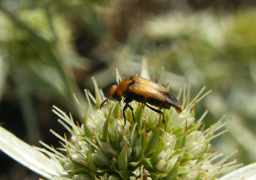 Caccia fortunatissima ieri mattina :hp: (chissà se e quando mi ricapiterà). Su infiorescenze di Eryngium campestre ho raccolto 8 Macrosiagon di cui 2 M. tricuspidatum, gli altri 6 dovrebbero essere M. ferrugineum (domani ne posto uno). Questo è l'unico che misura 6 mm, gli altri sono lunghi sui 7 - 8 mm. E' un M. ferrugineum? Grazie a tutti.